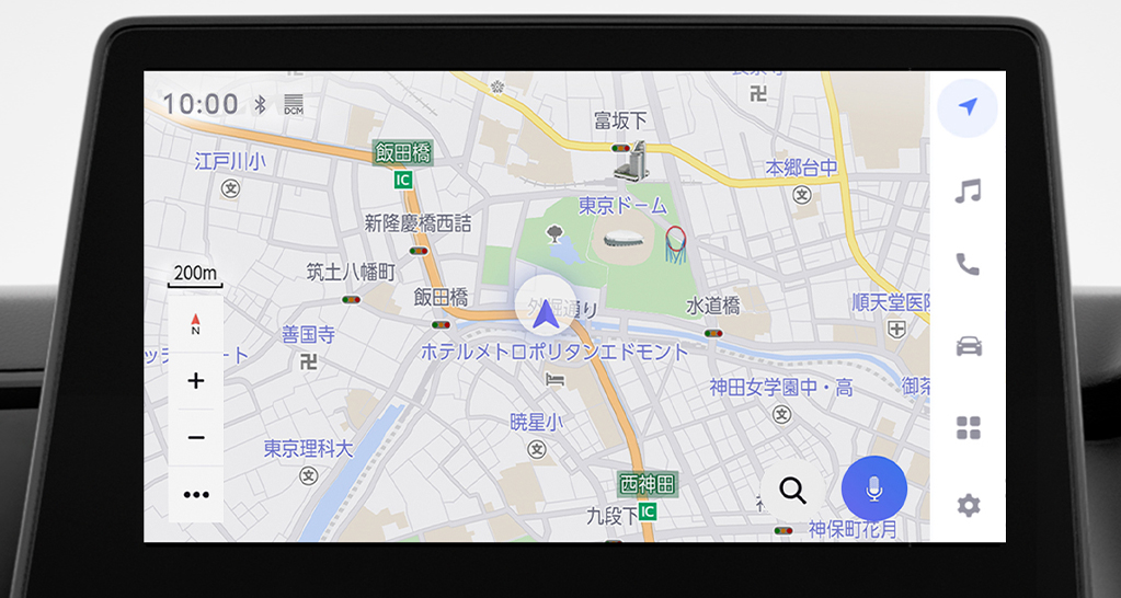 大画面10.5インチの大きく鮮明な地図と高コントラストの美しい映像がご覧いただけます。センター通信型コネクティッドナビの対応に加え、通信が途切れて万一保持する地図情報の外に出てしまった場合でも、続けてナビ機能が利用できる車載ナビ機能も搭載しています。*
