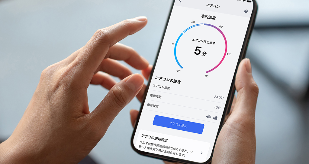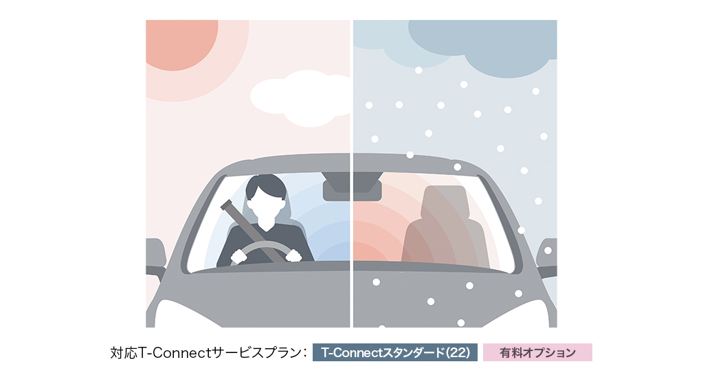 「My TOYOTA+」の操作で、離れた場所からエアコンを操作。夏も冬も快適な温度で乗車できることに加えて、凍結したガラスの霜取りも行えます。