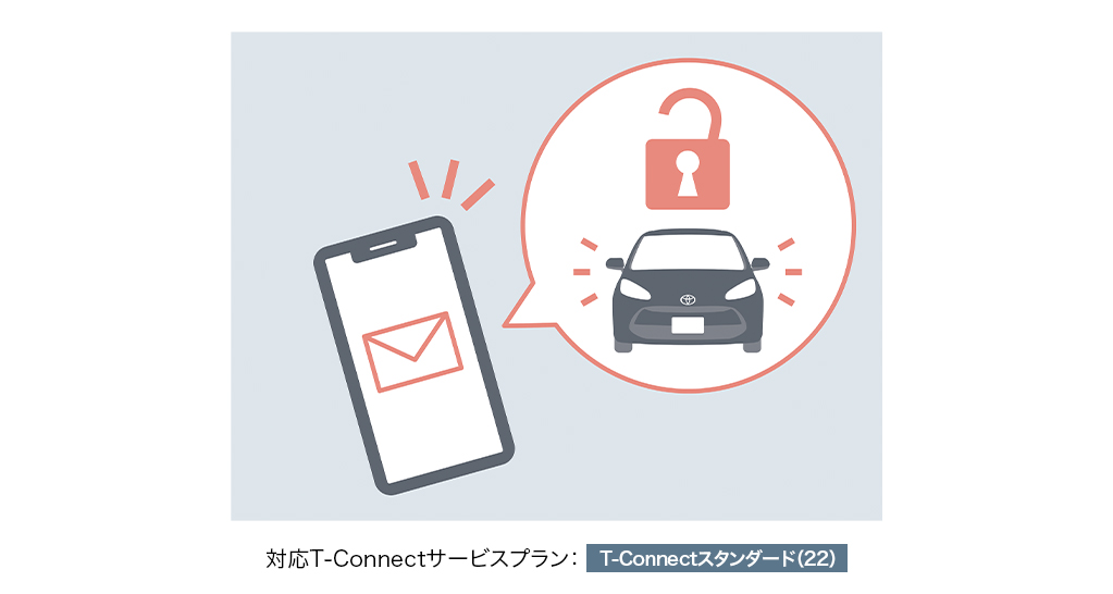 ドアロックやウインドゥの閉め忘れ、ハザードランプの消し忘れなど、操作忘れを検知すると「My TOYOTA+」やメール*にお知らせします。