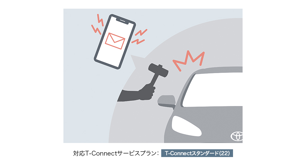 ドアのこじ開けなどによるオートアラーム作動を検知すると「My TOYOTA+」やメール*にお知らせします。