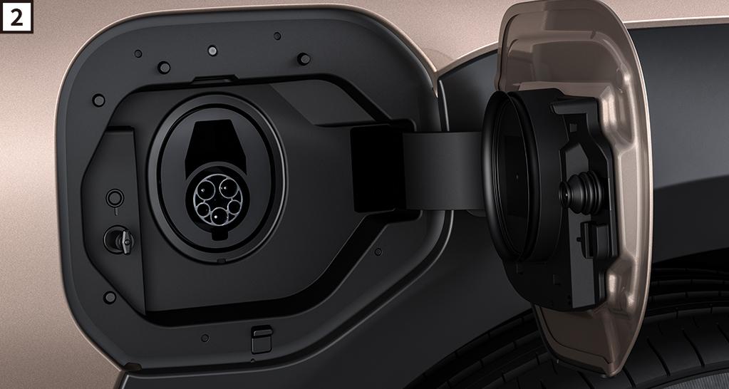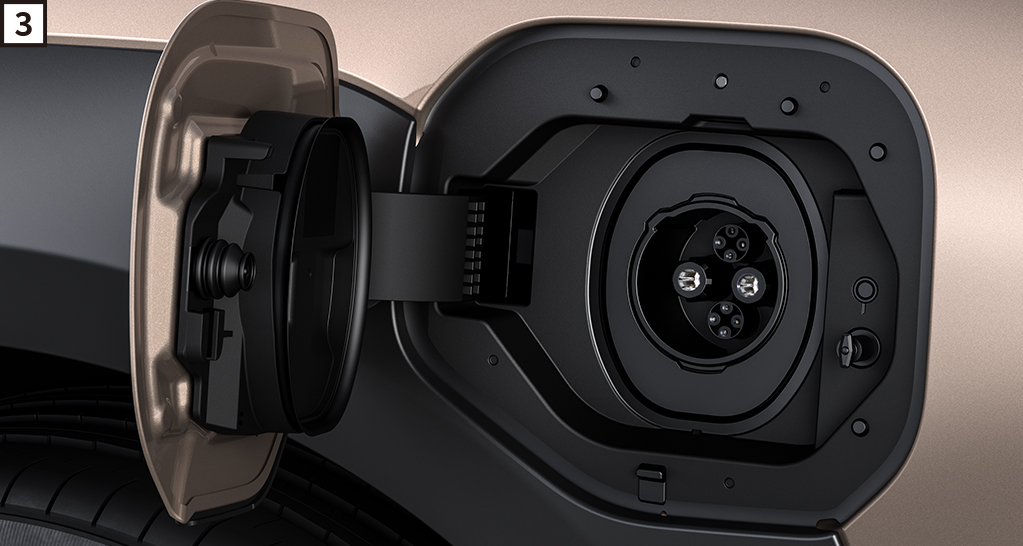 [2]普通充電ポート(充電インレット照明・充電インジケーター付)車両に付属の充電ケーブルを用いて、自宅駐車場などのコンセント(200V/100V)とつなぐ充電や、普通充電器(スタンド)を利用した充電が可能です。