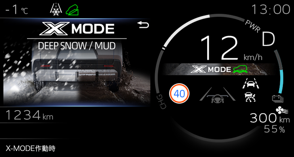 悪路で高い走破性を発揮するX-MODEを搭載。