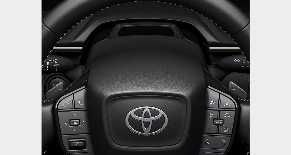 大径タイヤを四隅に配置したロングホイールベース&ショートオーバーハングにより、開放的な後席のゆとりを実現。また、バッテリースペースの拡大や伸びやかなサイドスタイリングにも貢献しています。