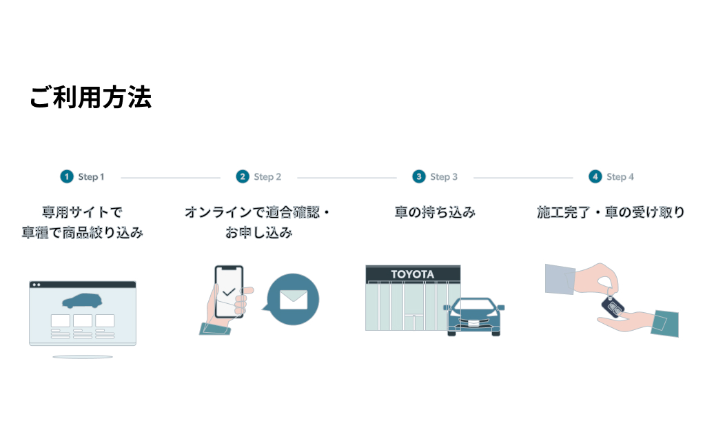 新車の注文時にしか選択することができなかった装備や純正アイテムなどをお乗りのクルマに後から取り付けできる。