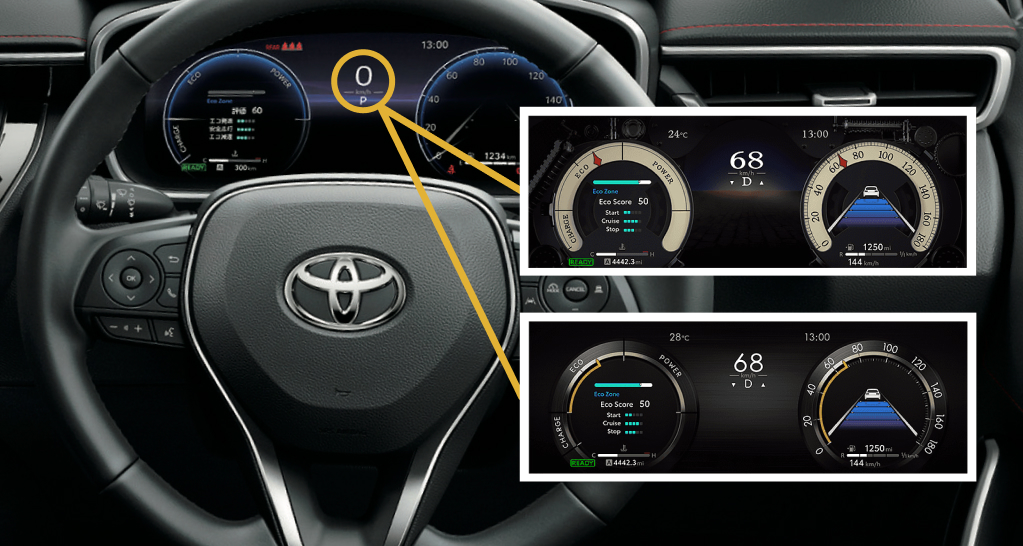 12.3インチTFTカラーメーターに、既存4種に加えて新たに2種類のデザインが選べる。