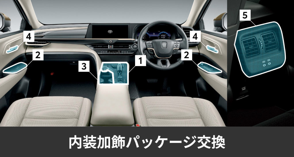 あなたのクラウンに70周年モデルのエッセンスを追加するアイテムを5つご用意しております。