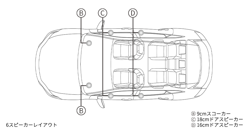 原音の忠実な再生を追求した、シンプルかつ上質なサウンドシステム。豊かな重低音や繊細な中高音が車内を満たします。