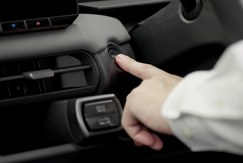 車内のデジタルキー作動範囲内にお客様のデバイスがある状態で、ブレーキを踏みながら、スタートスイッチを押します。