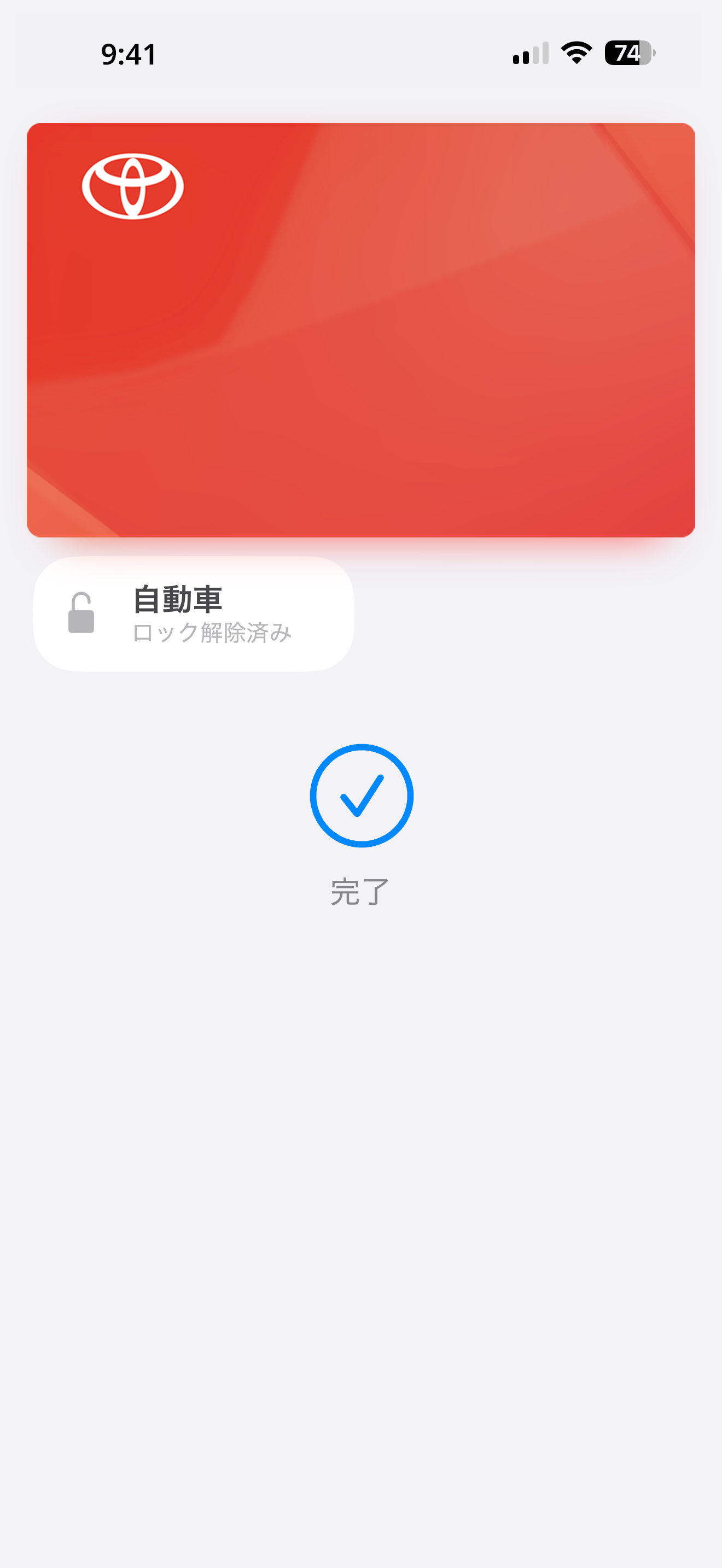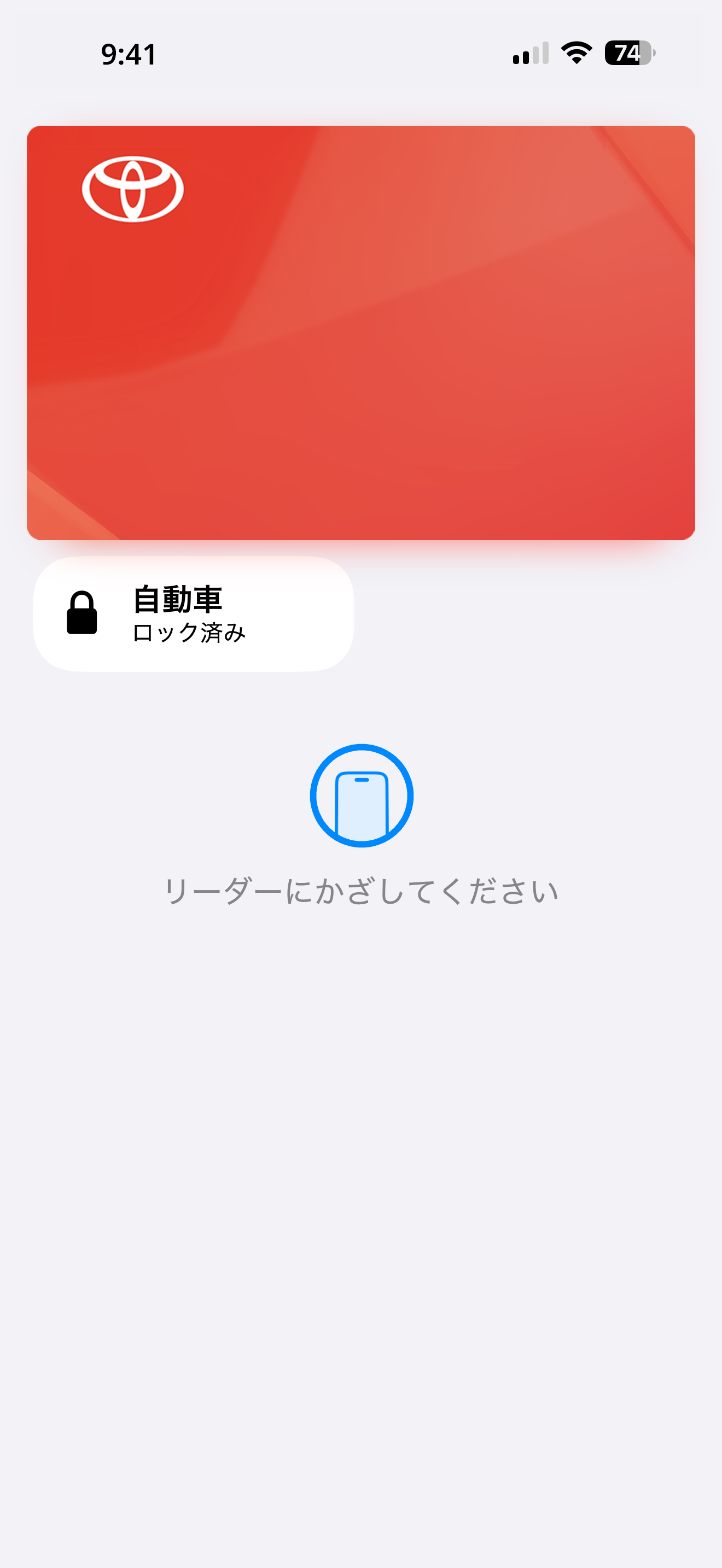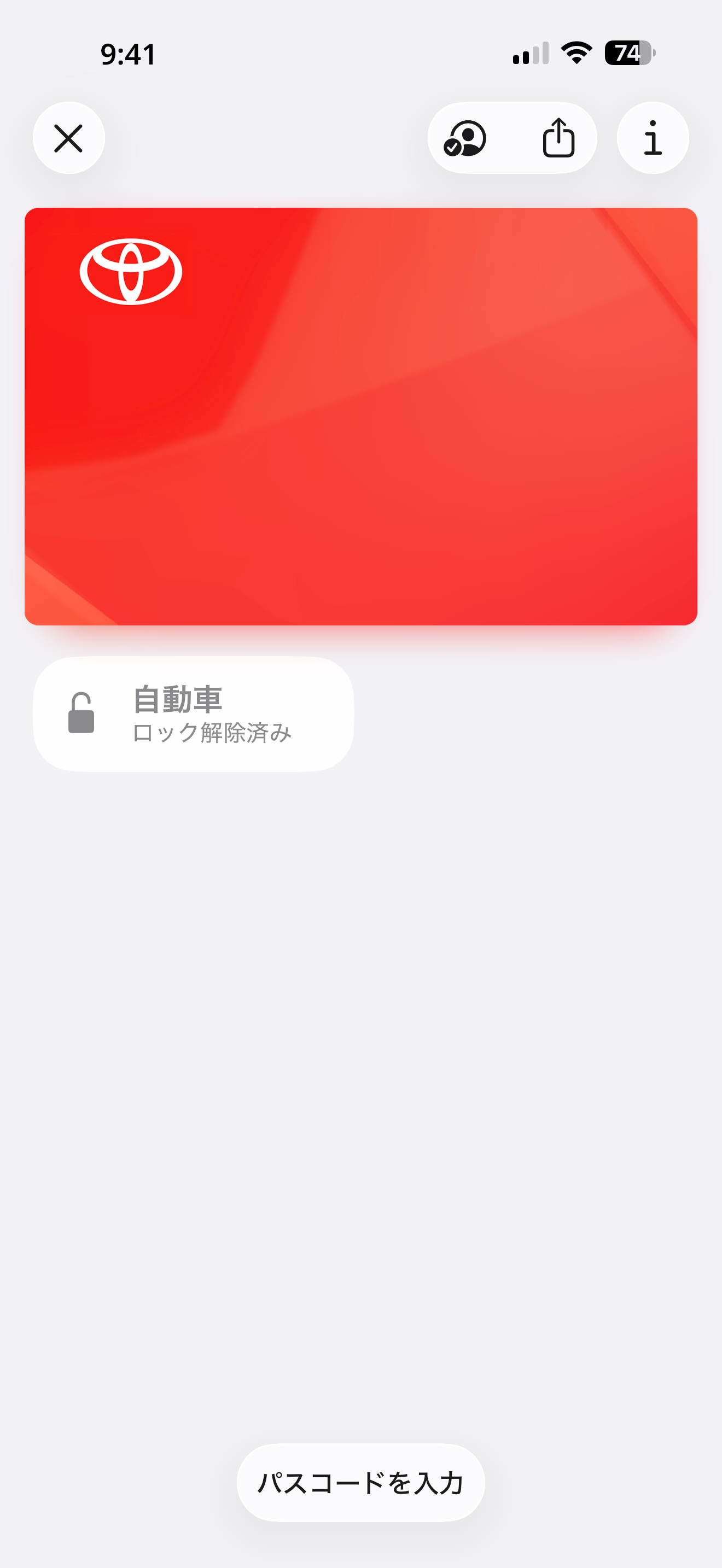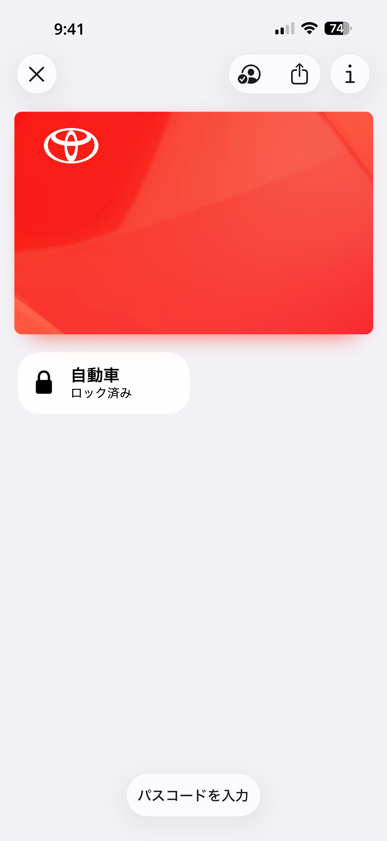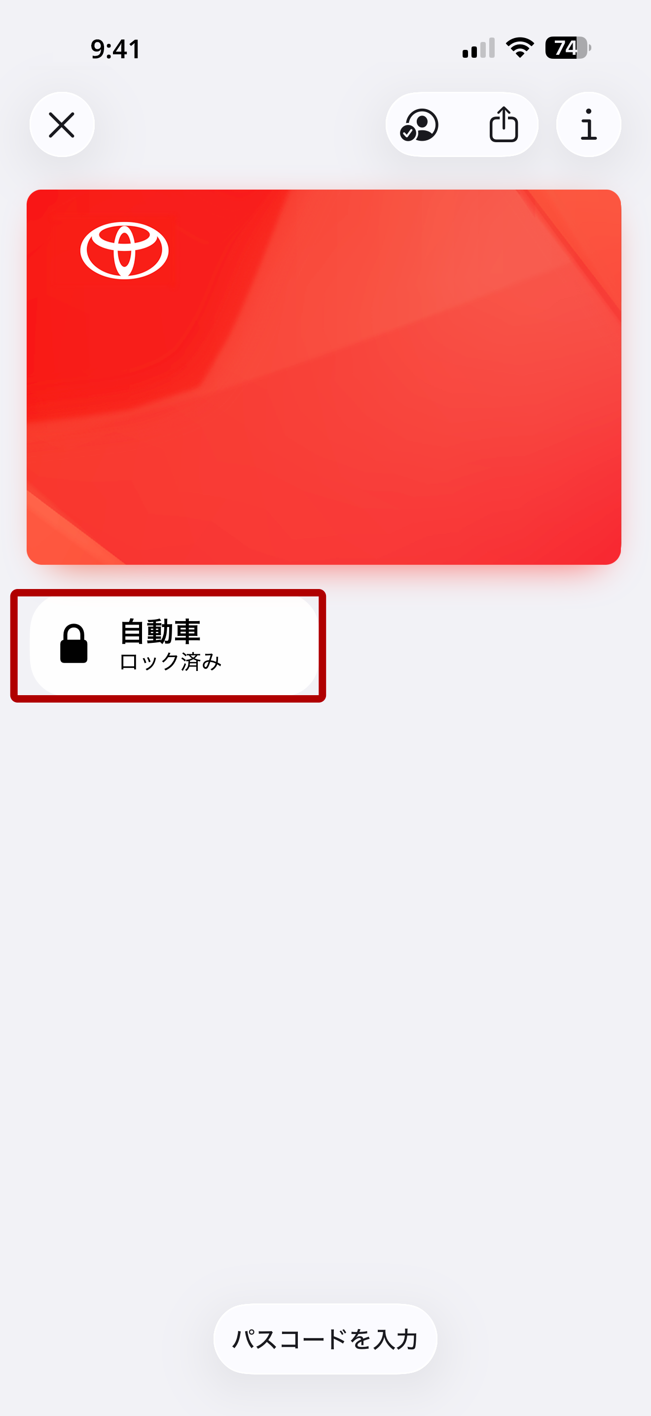 ドアが施錠されているクルマに近づき、ウォレットアプリ画面内の「自動車ロック済み」をタップします。
