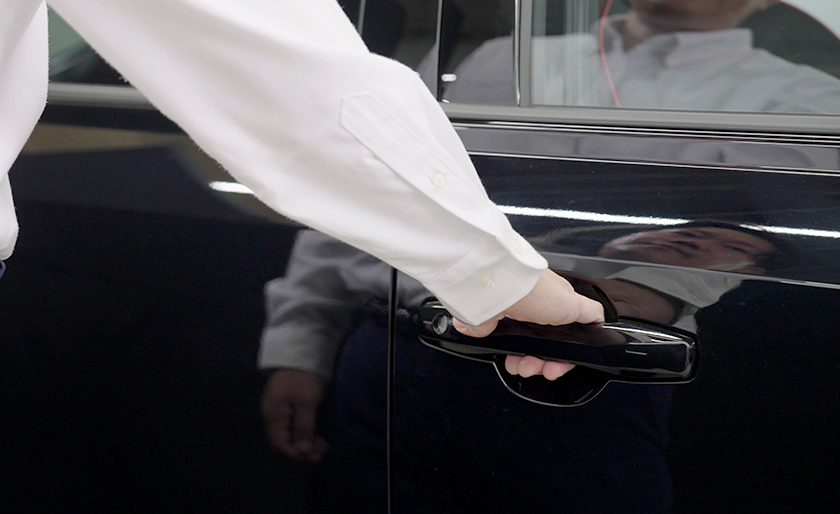 ドアが解錠されている状態で、お客様のデバイスを所持し、ドアハンドルに触れます。