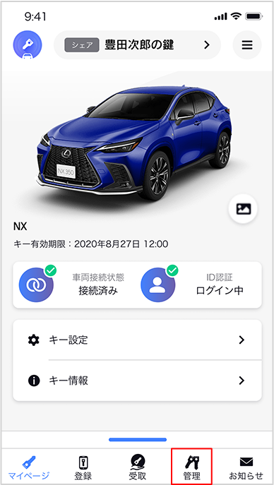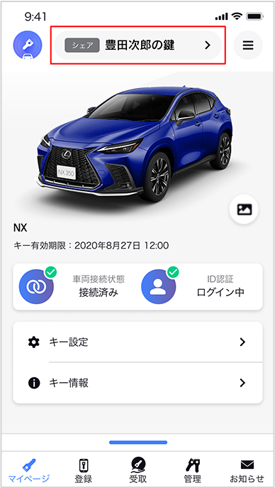 デジタルキーをシェアしてもらうことで、スマホのデジタルキーアプリでクルマのドアロック/アンロック、クルマの始動ができるようになります。