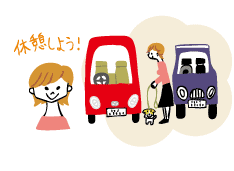 クルマに酔いにくい犬でも長時間のドライブになると、途中で休憩を入れましょう。サービスエリアに駐車して降りるときは注意が必要。クルマとクルマの間が狭いので、リードを短く持って、おやつなどで誘導しましょう
