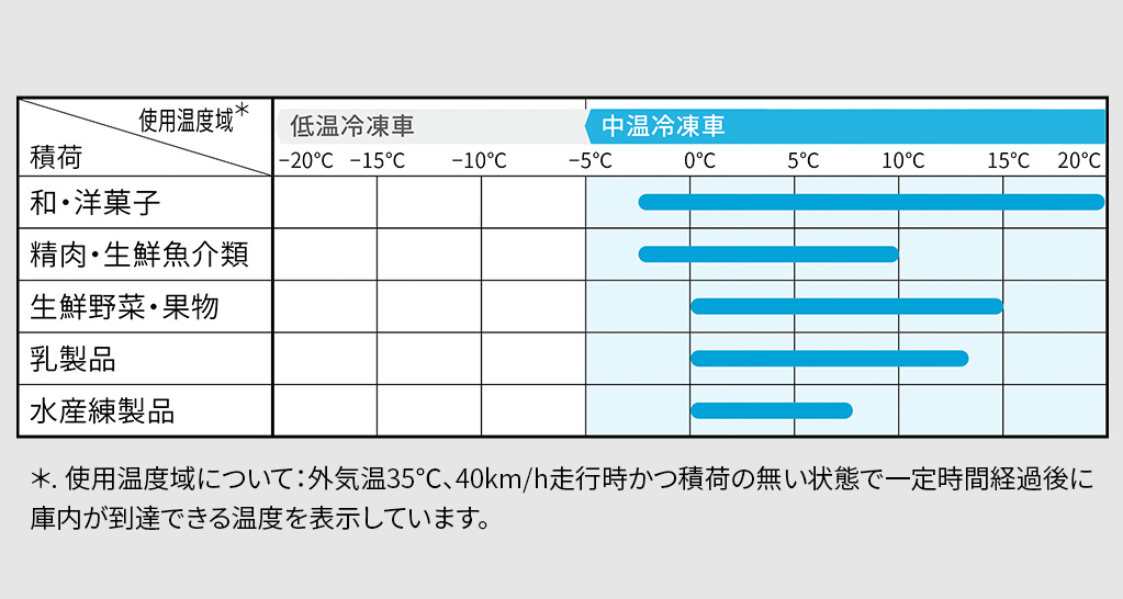 低温・中温、2タイプの冷凍車をラインアップ。