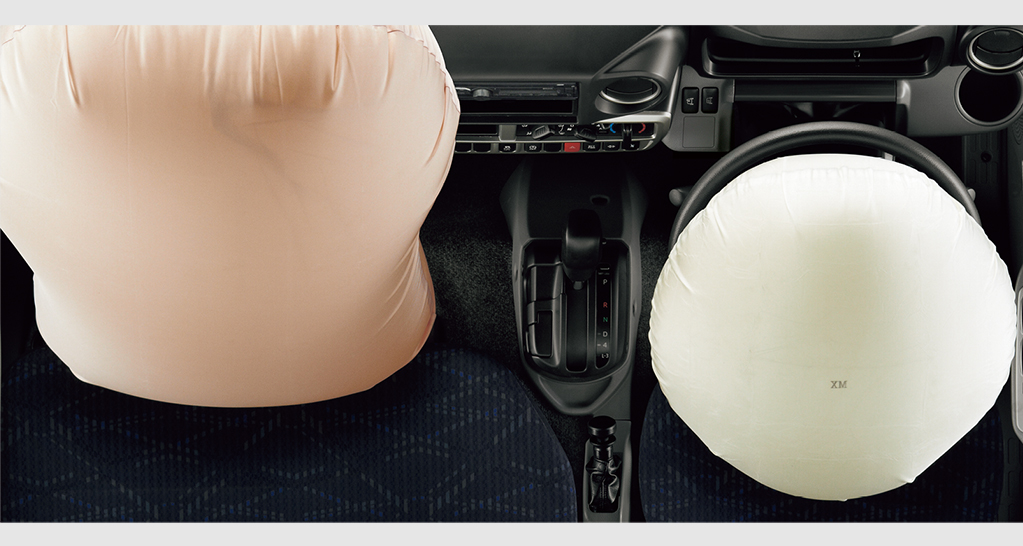 万一の事故の際に前方からの強い衝撃を感知して作動、シートベルトの働きと合わせて乗員の頭や胸のダメージを軽減する運転席SRSエアバッグを標準装備※。さらに、正面衝突時に乗員の拘束効果を高める運転席プリテンショナー機構付シートベルト、シートベルト非着用時に警告灯とブザーで知らせる運転席シートベルト非着用警告灯&シートベルトリマインダーも全車標準装備。