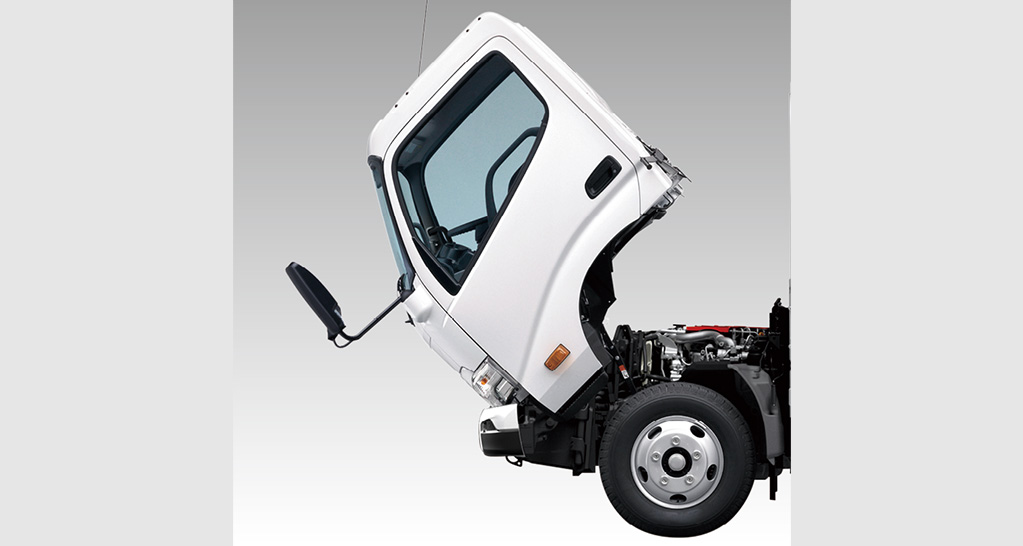前方にチルトアップできるキャブ機構を採用。毎日行う始業点検やメンテナンス時にも、見やすく作業のしやすい優れた機能性を発揮します。
