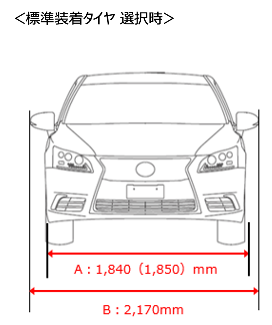 ※1「トレッド」と「タイヤの幅」を足した計算値です。車両の状態や季節などによっても数値が異なりますので、目安としてご覧ください。