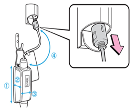 | 充電ケーブル | 設定 | 長さ(A) | 長さ(B) | 全長(C) | 電源プラグの 太さ(D) |