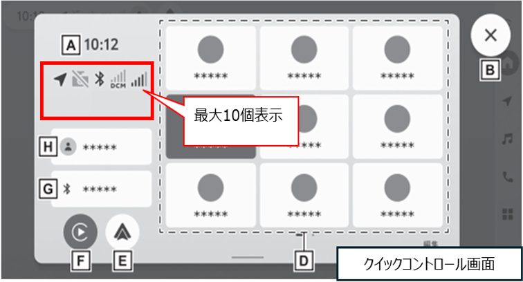 スイッチがある機種は、クイックコントロール画面にて、最大10個のステータスアイコンを確認することが可能です。