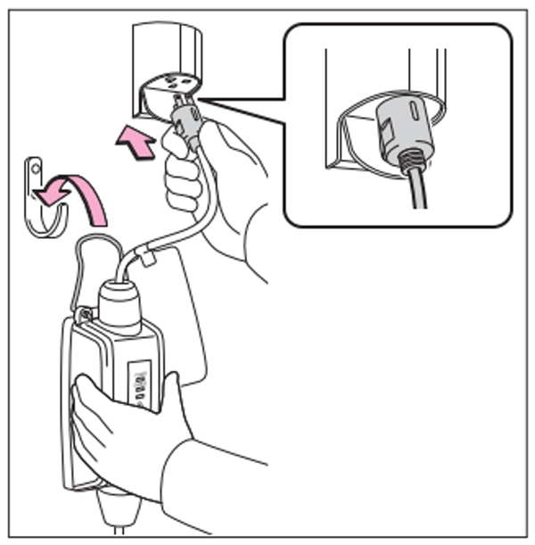 コンセントや、電源プラグへの負荷を軽減するために、電源プラグを挿しているときは、コントロールユニットをフック等にかけておくことをおすすめいたします。