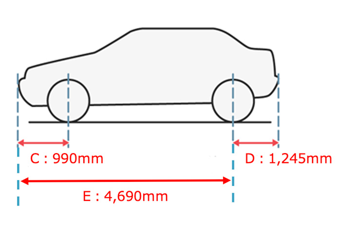 | 長さ | フロントバンパーオーバーハング | C | 990 | |