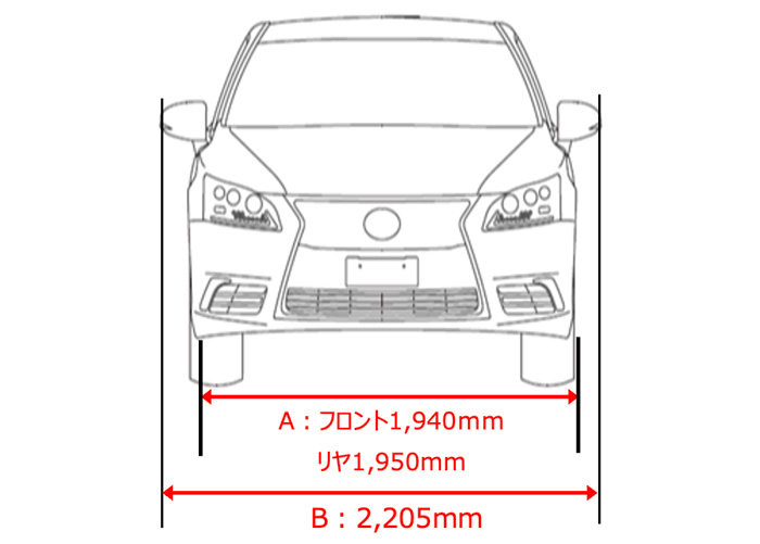 | 幅 | タイヤの外側間寸法 ※1 | A | フロント:1,940 リヤ:1,950 | |