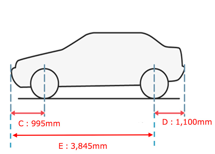 | 長さ | フロントバンパーオーバーハング | C | 995 | |