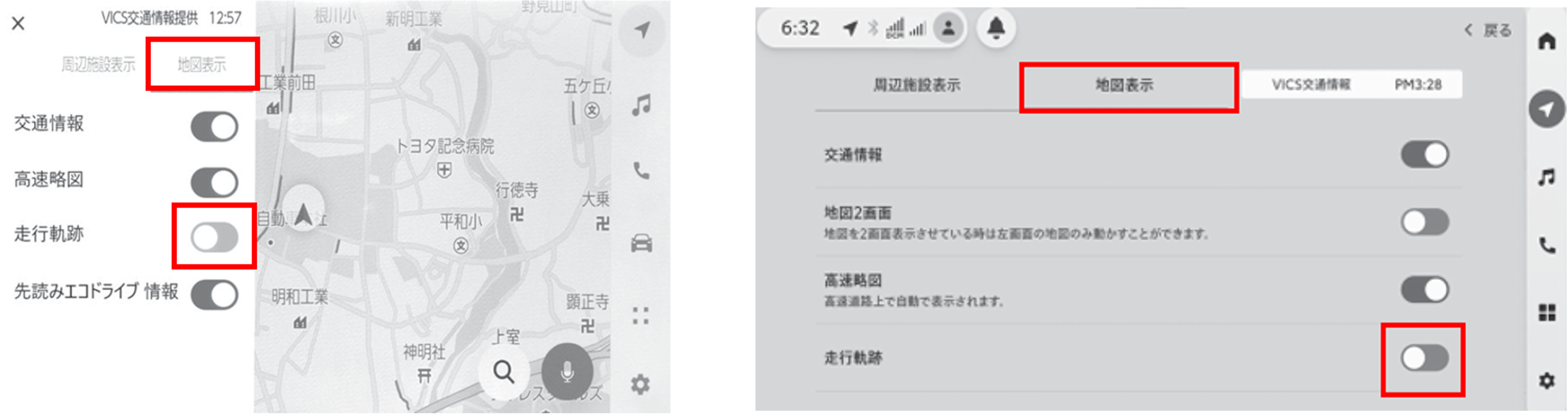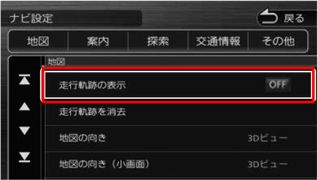 「地図」 の 「走行軌跡の表示」をOFFにする
