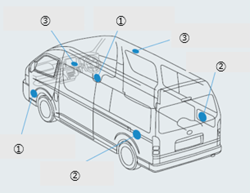 【ハイエース】工場装着スピーカーの口径・W数・取付位置を教えて。