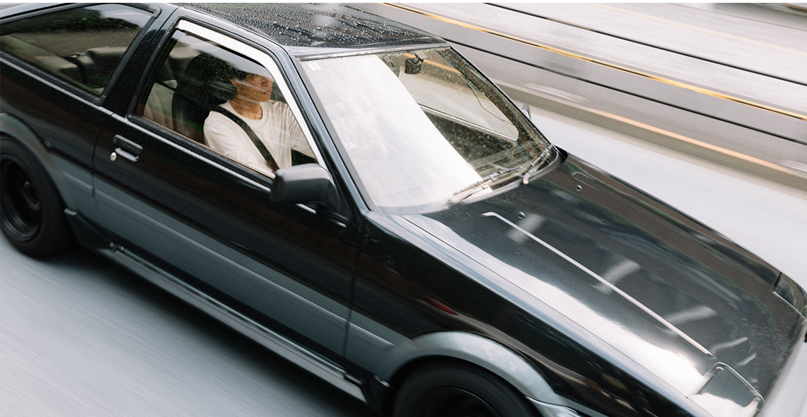 時計やアクセサリー、家具などを買うとき、僕は一生付き合っていけるかという視点でモノを選んでいます。スプリンタートレノにもそういう思いがあって。発売から30年以上が経った今も色褪せることのないタイムレスなクルマ。そんな名車に運よく乗ることができているんです。機械だから一生とはいかなくても、10年、20年……と、この先ずっと一緒に時間を過ごしていければと思います。