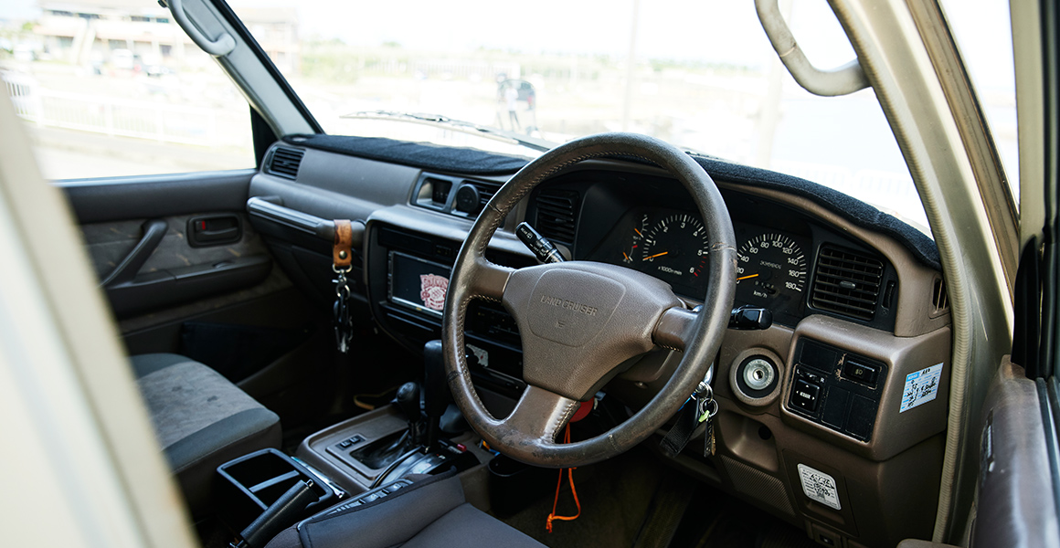 昔からアウトドアの仕事をしていて、クルマも仕事で使う大切な道具のように考えています。この「ランドクルーザー80」に出会う前は、4WDでFRベースの「ノア」に乗っていました。この「80」を選んだのは、自分が営むレストランにランクル乗りの常連さんがおり、勧められたのがきっかけです。アウトドアシーンでの積載性や悪路走破性に加えて、コイルスプリングを使った足回りにより、乗り心地が良いのも「80」にした理由ですかね。撮影の道具から、カヤック、サーフィン、釣り、自転車となんでも積むので、荷室やルーフは自分なりに改造しています。このクルマはどんなに荷物を載せても、パワフルに走ってくれる頼もしさがあります。