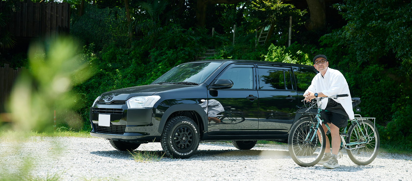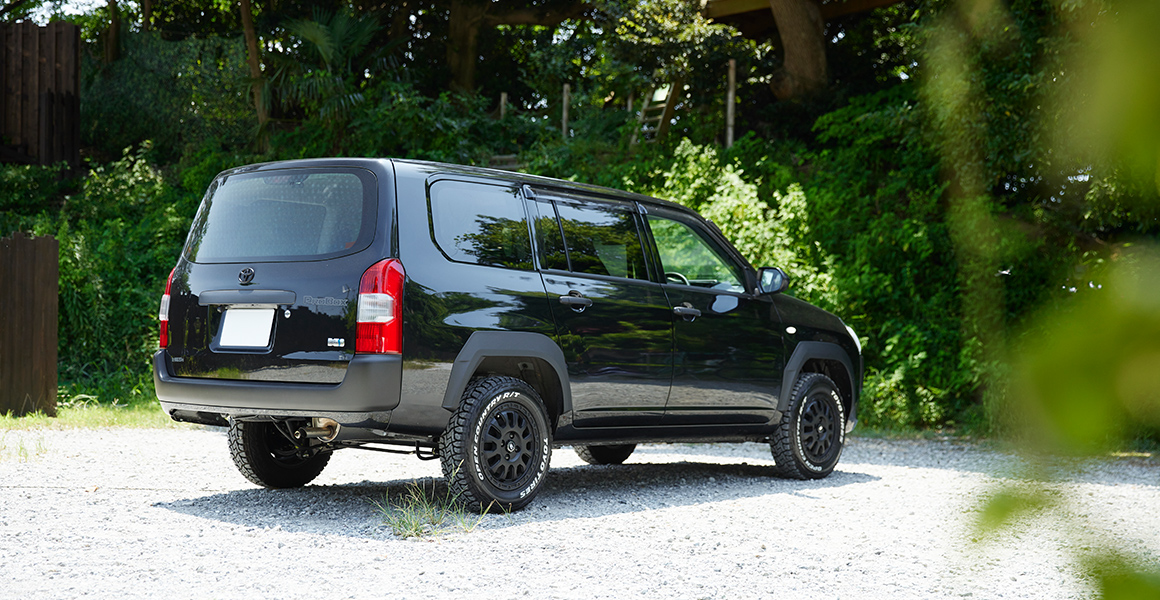 長年乗っていたSUVが買い替え時になったので、昨年「プロボックス」のハイブリッドを購入しました。街中では良く見かけるクルマですが、カスタムをすることで、個性的なクルマになると思い、カスタムされた新車の「プロボックス」を何年か探していました。そして今の愛車に巡り合ったのですが、実際に乗ってみると燃費がすごく良くて、小回りも効いて、荷室の積載性が良いのには驚きでした。アウトドアではサイクリングを良くします。自転車のフロントホイールを外せば自転車が2台乗せることができます。仕事で運ぶことの多い、長い生地の反物もそのまま収納できます。耐久性も高いと感じていますので、商用車として長年愛されている理由が良く分かりました。アウトドアシーンでも活躍してくれます。