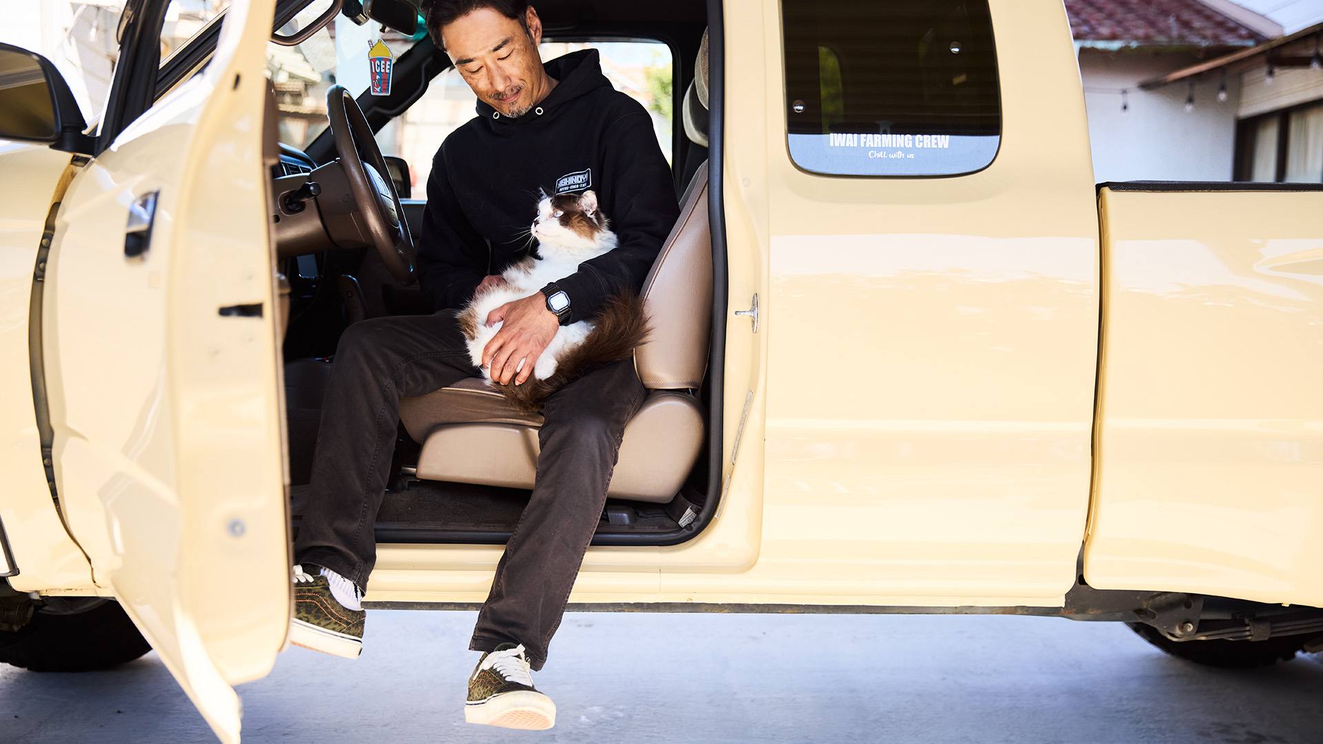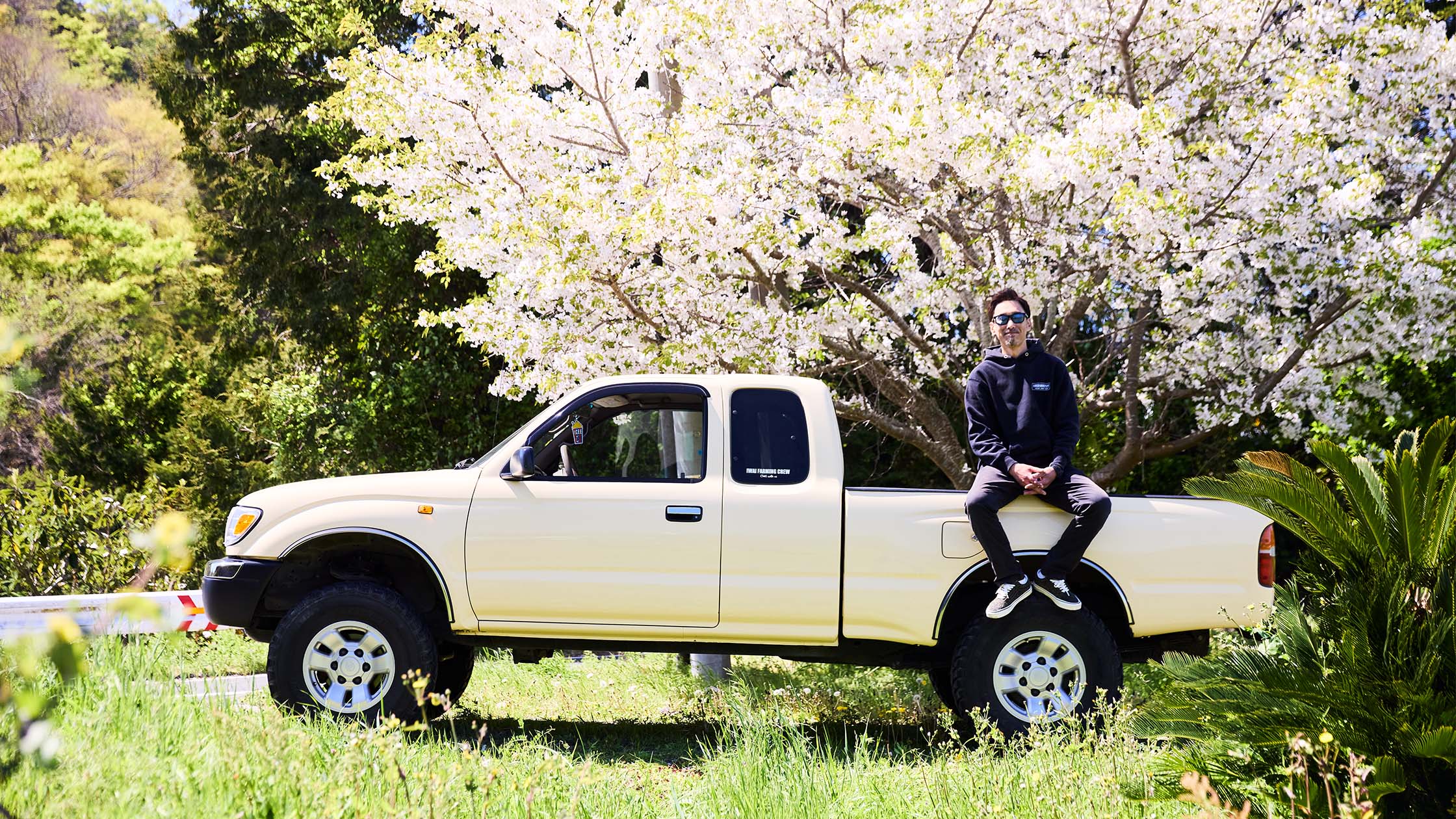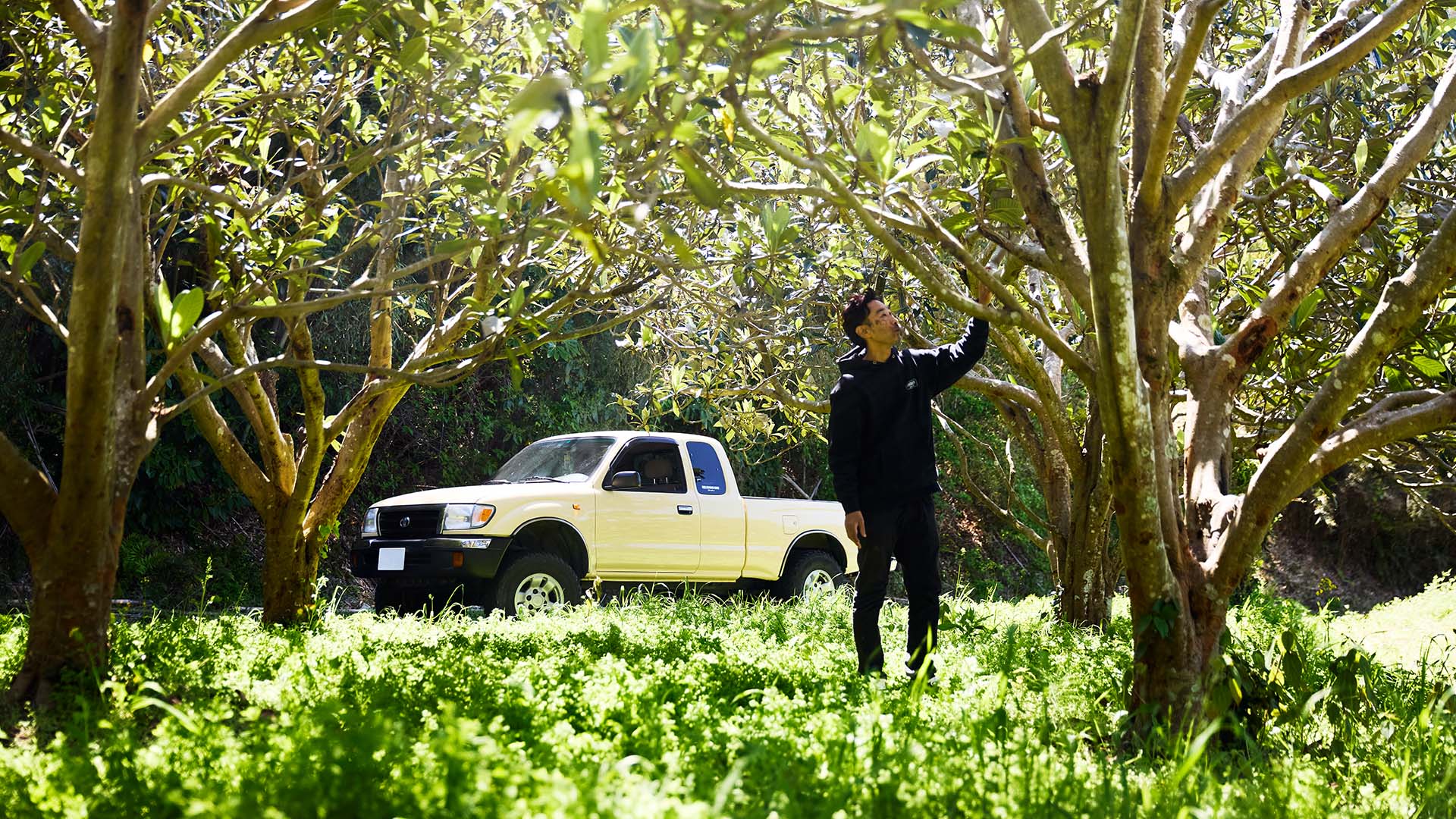 クルマ好きで整備士としての腕を磨いたのちに、現在は注目の若手農家としてびわを栽培する穂積秀和さん。昔からピックアップスタイルのクルマが好きで、念願の一台として手に入れたのが「タコマ」です。家族の理解と支えにも感謝しながら、愛車がいつもそばにある暮らしを大切にしています。