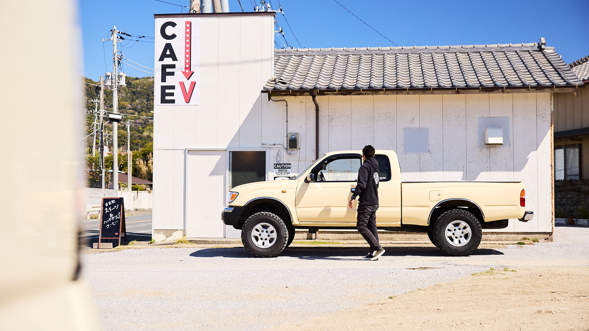 普段の暮らしの中では、海辺の海岸線を走るのがお気に入りです。コーヒーが好きなので、ドライブ途中でふらっと鋸南の「カフェV」に妻と一緒に立ち寄ることがよくあります。