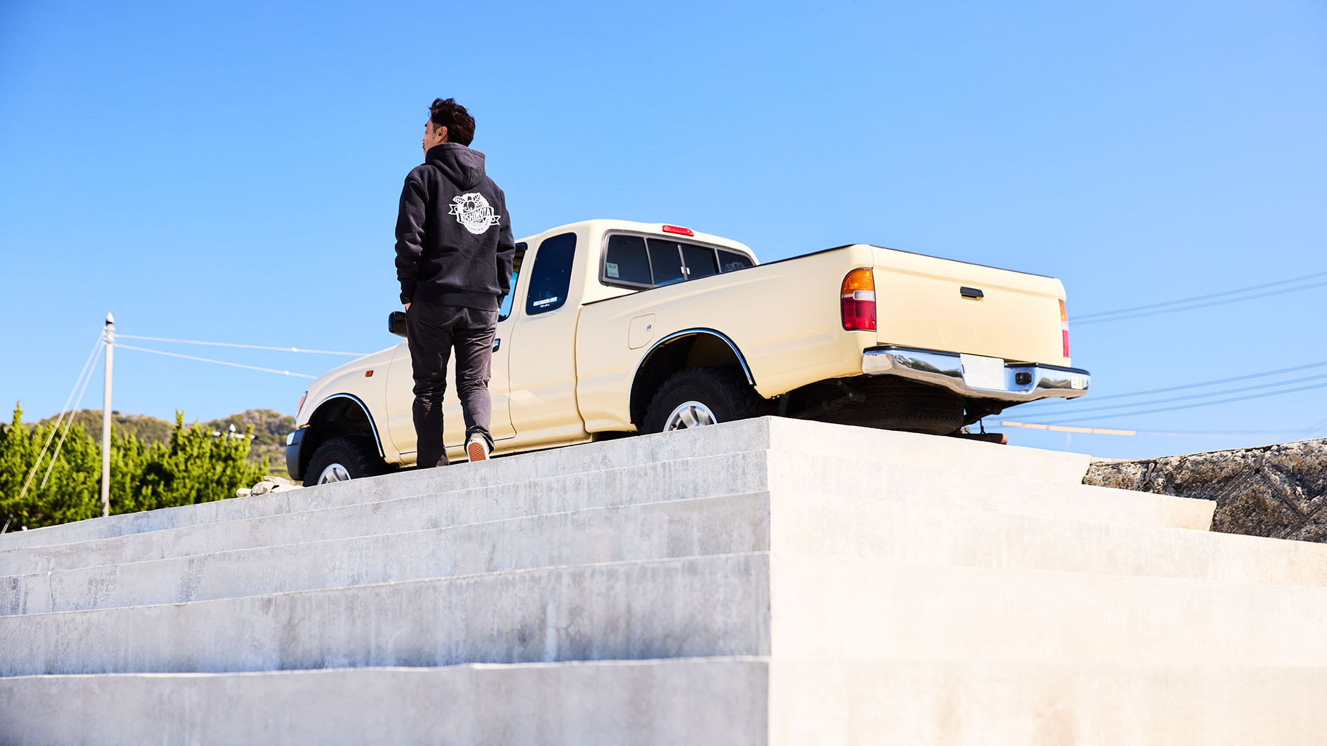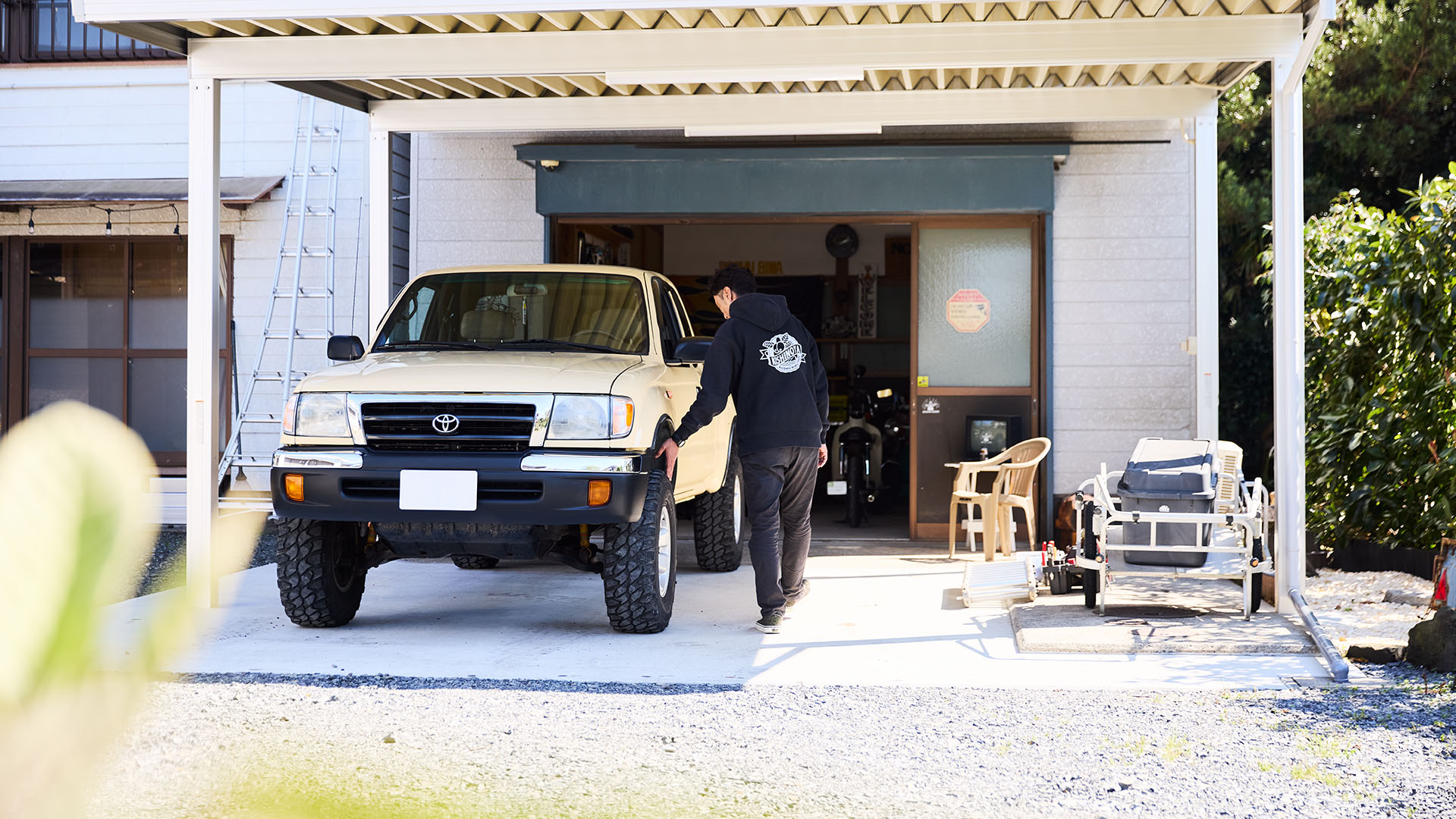 ピックアップというスタイルは、北米のカルチャーの中で成熟してきたものです。そのためカスタムを重ねていくと、自然とパーツの選択もUS仕様へと寄っていきます。そうであるなら最初からアメリカで生まれたモデルをベースにした方がいいと考えました。そして、前席の後ろに小さなスペースや、補助席を備えるエクストラキャブタイプの独特のプロポーションにずっと惹かれて続けていたのですが、「タコマ」はまさにそれを体現する一台です。さらにトヨタ自動車ならではの信頼性と耐久性は、世界一だと感じていたため、長く乗り続けることを考えると、大きな魅力です。