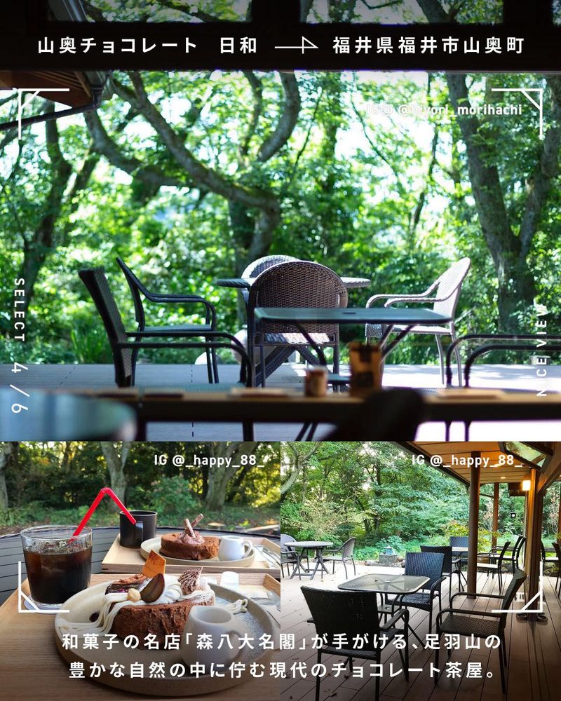 和菓子の名店「森八大名閣」が手がける、足羽山の豊かな自然の中に佇む現代のチョコレート茶屋。