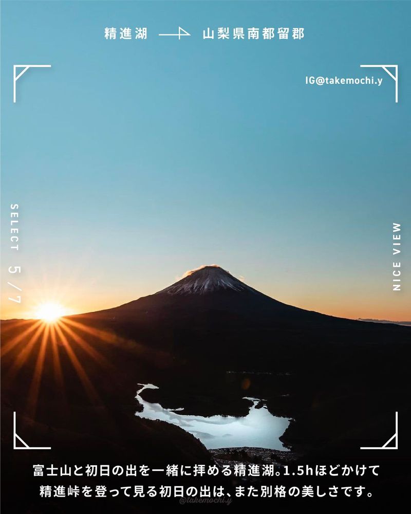 富士山と初日の出を一緒に拝める精進湖。1.5hほどかけて精進峠を登って見る初日の出は、また別格の美しさです。