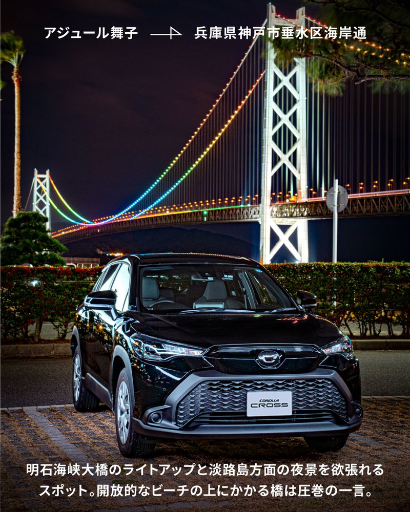 明石海峡大橋のライトアップと淡路島方面の夜景を欲張れる贅沢スポット。