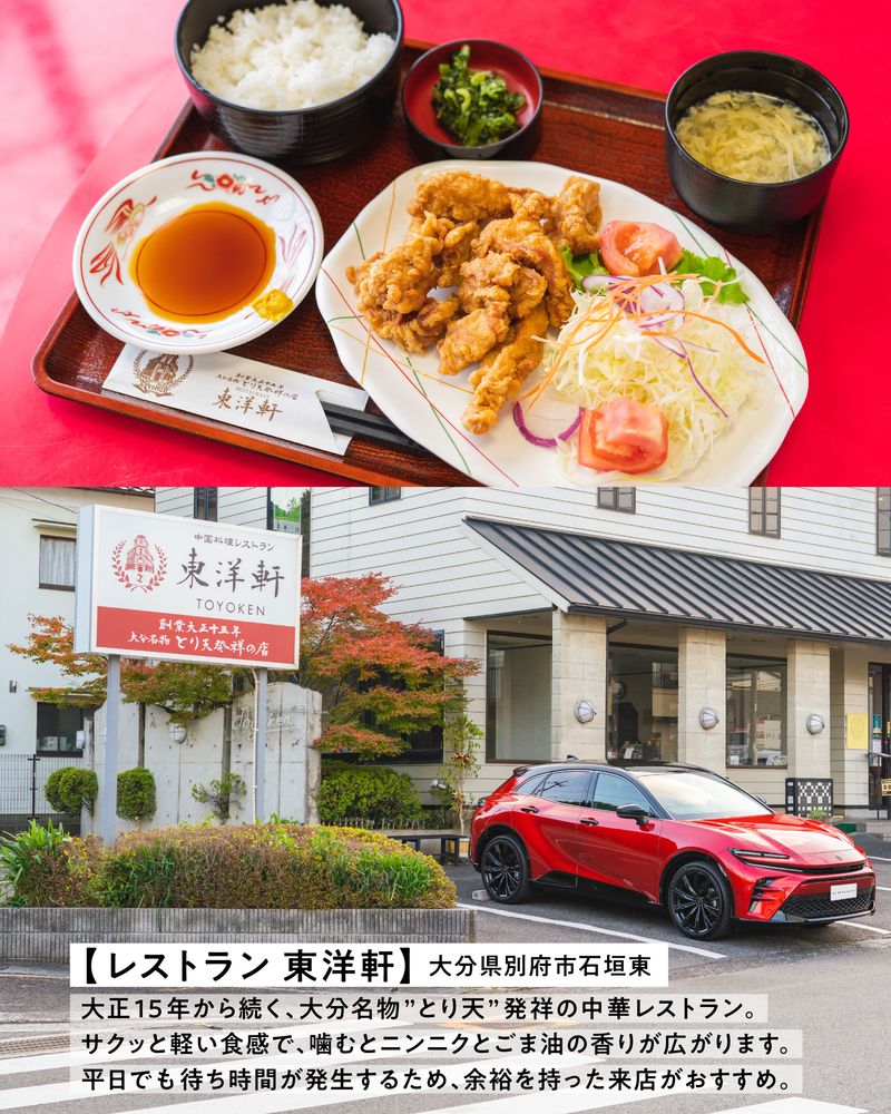 大正15年から続く、大分名物とり天発祥の中華レストラン。中華料理を和風にアレンジして生まれたというとり天はサクッと軽い食感で、噛むとニンニクとごま油の香りが広がります。平日でも待ち時間が発生するため、余裕を持った来店がおすすめ。