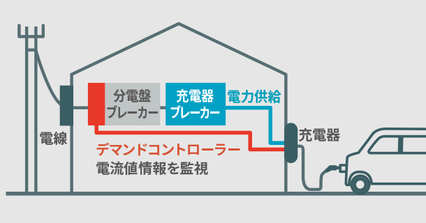 充電器本体に付属している充電用コネクターをクルマに差し込むだけで、簡単に充電できます。充電ケーブル一体のため、日々の充電作業を快適に、スマートに行えます。出発前の夜から充電して翌朝には満充電で出発可能。電気契約の基本料金を抑えられるトヨタ充電器用デマンドコントローラーと合わせてのご購入がおすすめです。