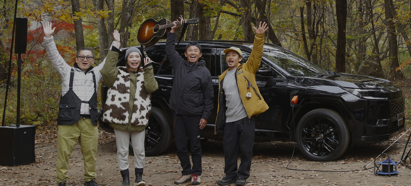 今回は、アウトドアファッション誌「GO OUT」とのタッグにより、山間のキャンプ場にスタジオを設営し、 新型RAV4 PHEVのパワーだけでラジオ収録&ライブ演奏をする前代未聞のプロジェクトに挑戦しました。