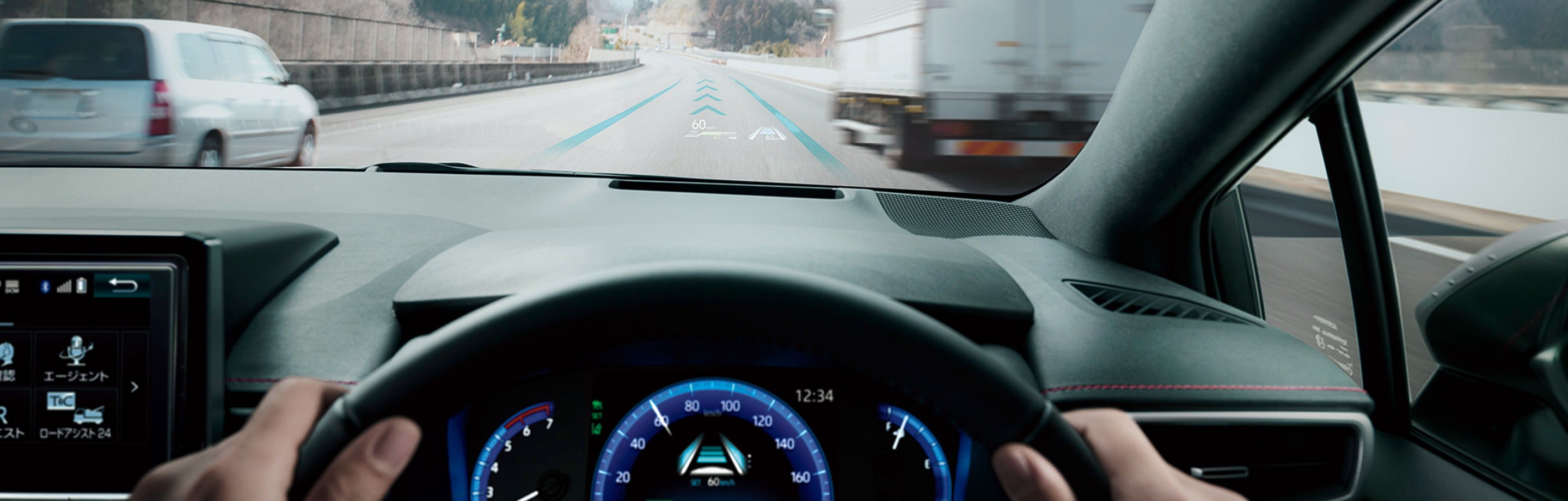 ■安全性の観点から、ドライバーはステアリングを持ち続ける必要があります。手を放すと、レーンチェンジアシスト[LCA]が停止します。