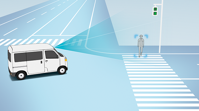 ※状況によっては、衝突回避支援ブレーキ機能が作動せず、衝突の回避、被害の軽減ができない場合があります。作動条件等について詳しくは取扱説明書をご確認ください。