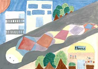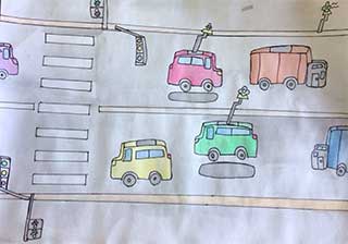 未来の町で走る夢のクルマを描くことを通して、
