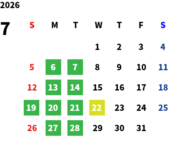 毎週火曜日、第1・2・3月曜日、祝日※5月・8月のみ第2月曜営業