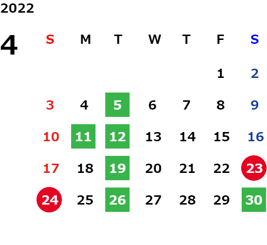 毎週火曜日、及び月毎に定める特定の日を定休日とさせて頂きます。
