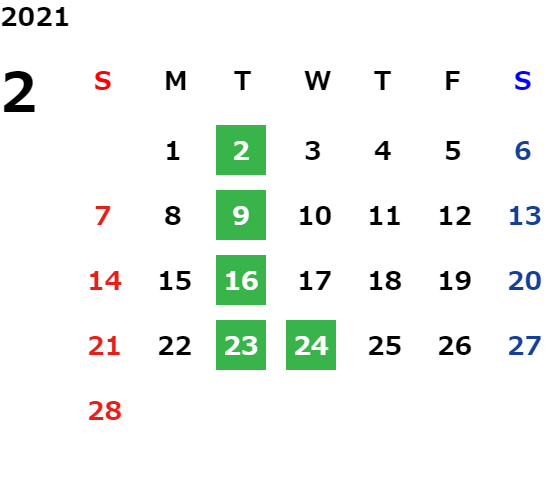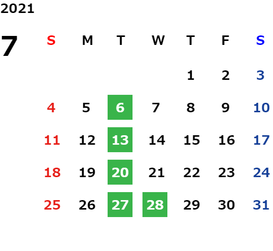 毎週月曜日と第1・第3火曜日になります 定休日については営業日カレンダーをご参照下さい。
