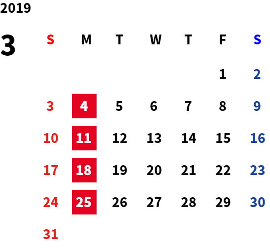 毎週月曜日(月曜祝日の場合は翌火曜日)