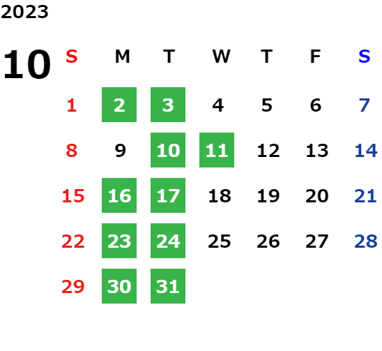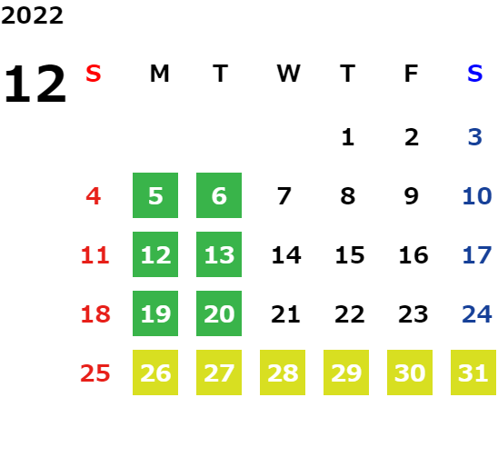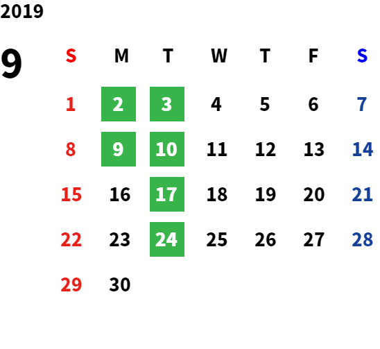 毎週月曜日・火曜日 ※除く祝日