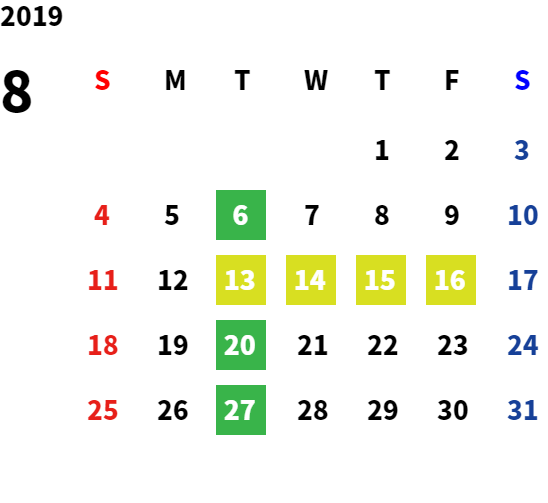 毎週月曜日・火曜日 ※除く祝日