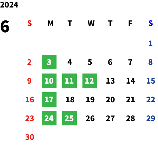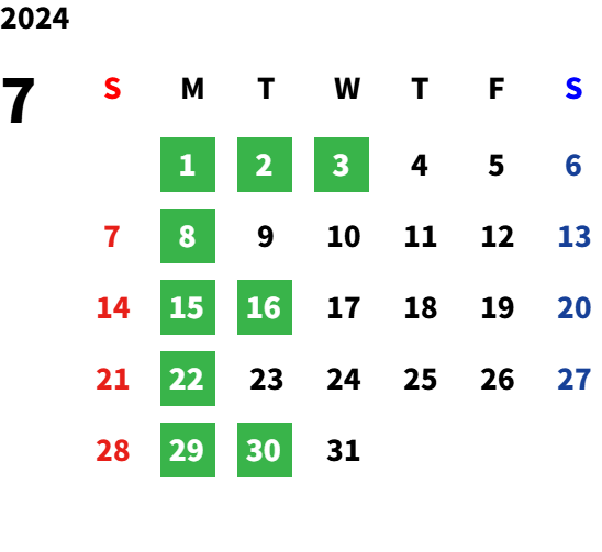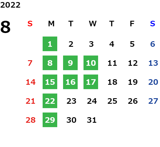月曜日、火曜日(隔週)、祝日